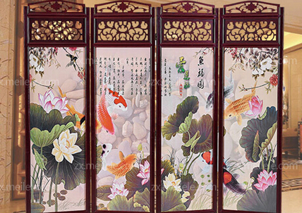 可移動仿古屏風隔斷這是一款實木雕花屏風,尺寸:高度1.8米,寬度4扇拉直2米寬。屏風上的花紋也是盛開的荷花,可以說是書房或者辦公室非常合適的屏風。屏風采用的是整體鏤空的設計,做工非常圓潤精致,是書房客廳都適合的仿古屏風。仿古屏風所展示出那種高貴的氣勢,是客廳、大廳、會議室、辦公室的首選。它可以根據需要自由擺放移動,與室內環境相互輝映。以往屏風主要起分隔空間的作用,而更強調屏風裝飾性的一麵,既需要營造出“隔而不離”的效果,又強調其本身的藝術效果,
